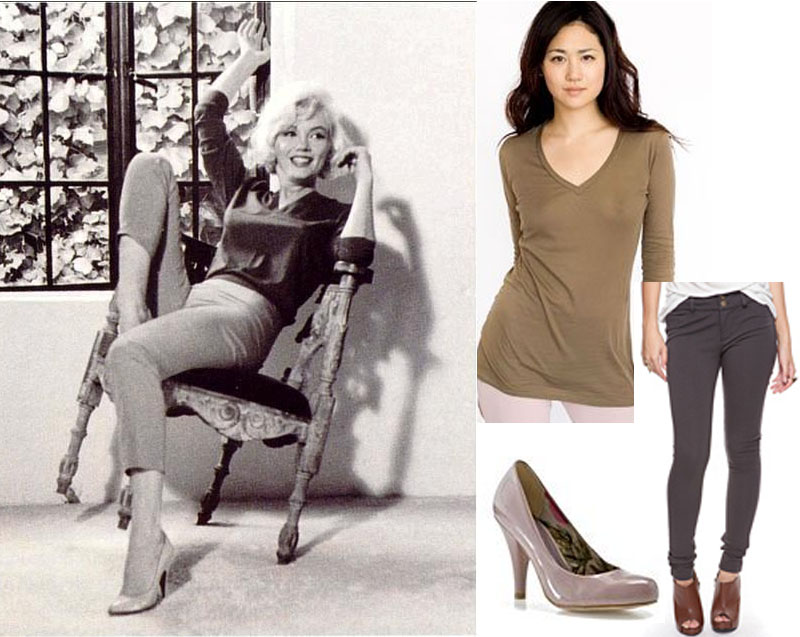 Since I’ve recently finished reading Blonde: A Novel by Joyce Carol Oates, Marilyn Monroe has been on my mind. Not only am I intrigued by her iconic status as a movie star, but also how influential her style still is today. Young starlets today continue to channel Marilyn’s curly blonde locks & sexy pin-up silhouettes on the red carpet. As Marilyn’s life was riddled with personal demons & rocky relationships, her life was tragically cut short & Hollywood lost one of its shining stars. We have preserved images of the forever-young beauty to inspire us for evening looks, weekends in the country, & daytime. Marilyn’s richly porcelain skin glistened against sexy whites & rich creams. Her voluptuous curves screamed sex appeal & lush femininity in sweetheart necklines & pencil dresses. Her blend of All-American & sultry radiated in dark denim & belted outfits with heels. Here’s an effortless three-piece look that the misunderstood comedienne pulls off in true Hollywood style: