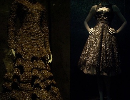 These were two of my favorite dresses, so very visually interesting. The one on the left is made from neck to floor from pheasant feathers. The leather bustier dress to the right had some much detail in the skirt, you get lost in it!