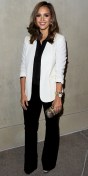 Red Carpet Review: The Best (310) Celebrity Looks of 2011! » Jessica Alba in J. Brand corduroys with a white blazer & gold accessories