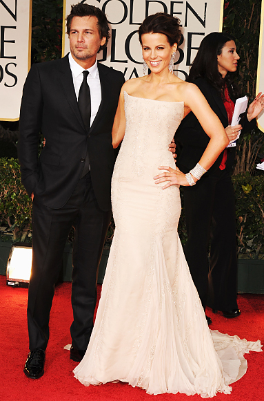 Kate Beckinsale in a cream Roberto Cavalli column gown