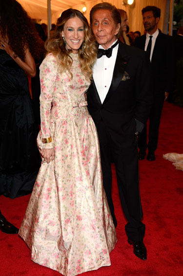Sarah Jessica Parker in a floral print Valentino gown with Valentino Garavani