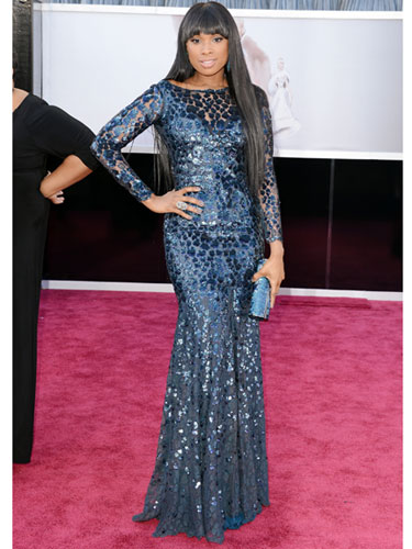 Jennifer Hudson in a blue embellished Roberto Cavalli long-sleeved gown