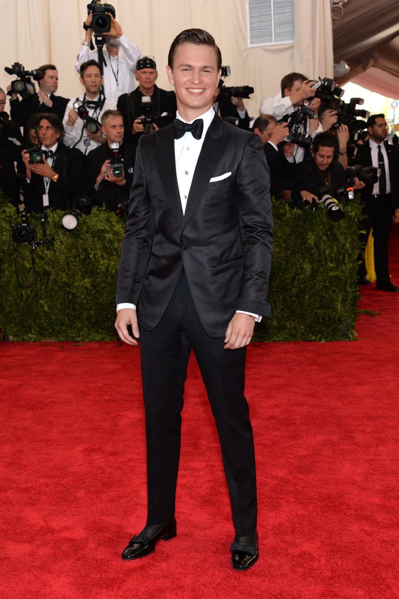 Ansel Elgort in a black tuxedo at the 2015 Met Gala. 01.