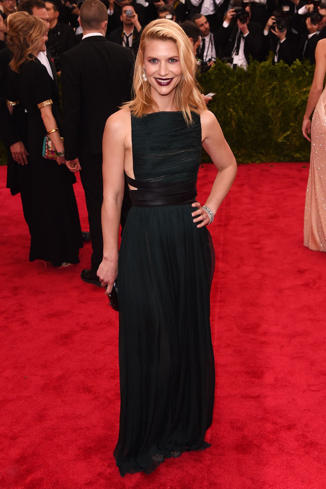 Claire Danes in a forest green belted Valentino dress at the 2015 Met Gala. 01.