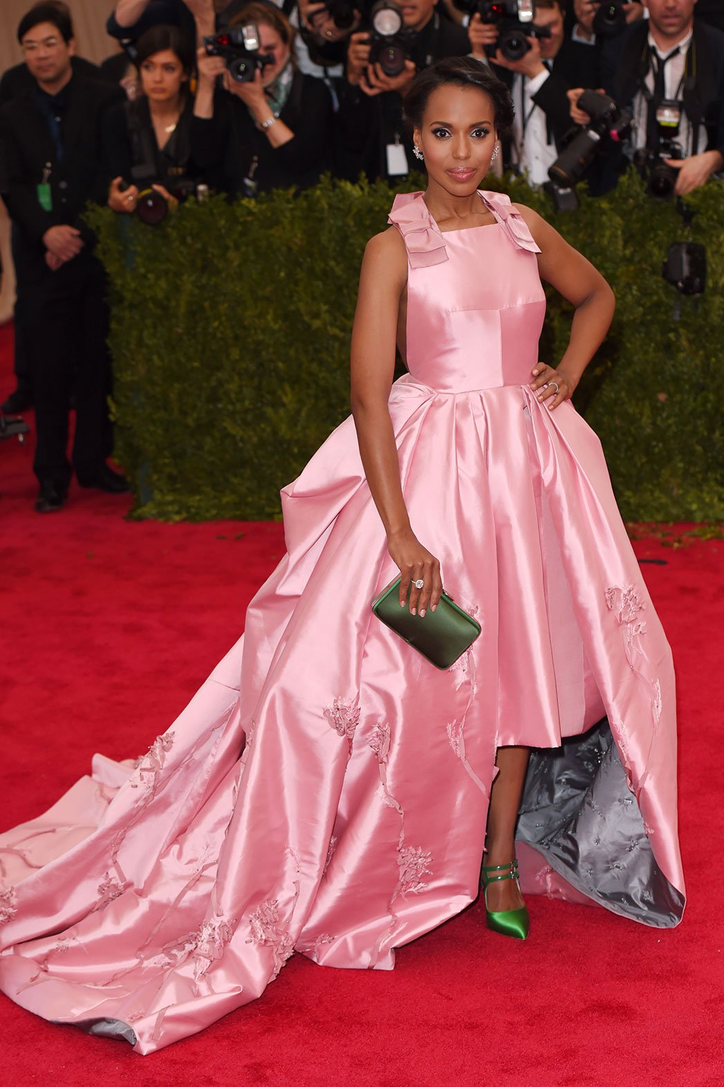 Kerry Washington in a pink high low ball gown at the 2015 Met Gala. 01.