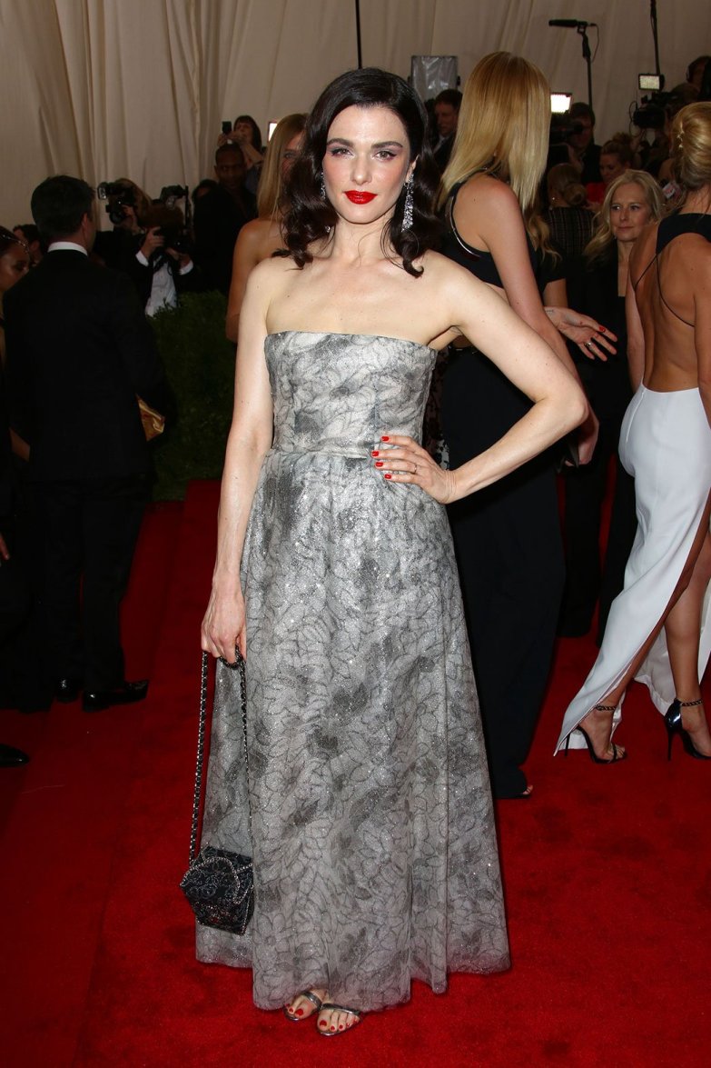 Rachel Weisz in a silver strapless breaded gown by Chanel at the 2015 Met Gala. 01.