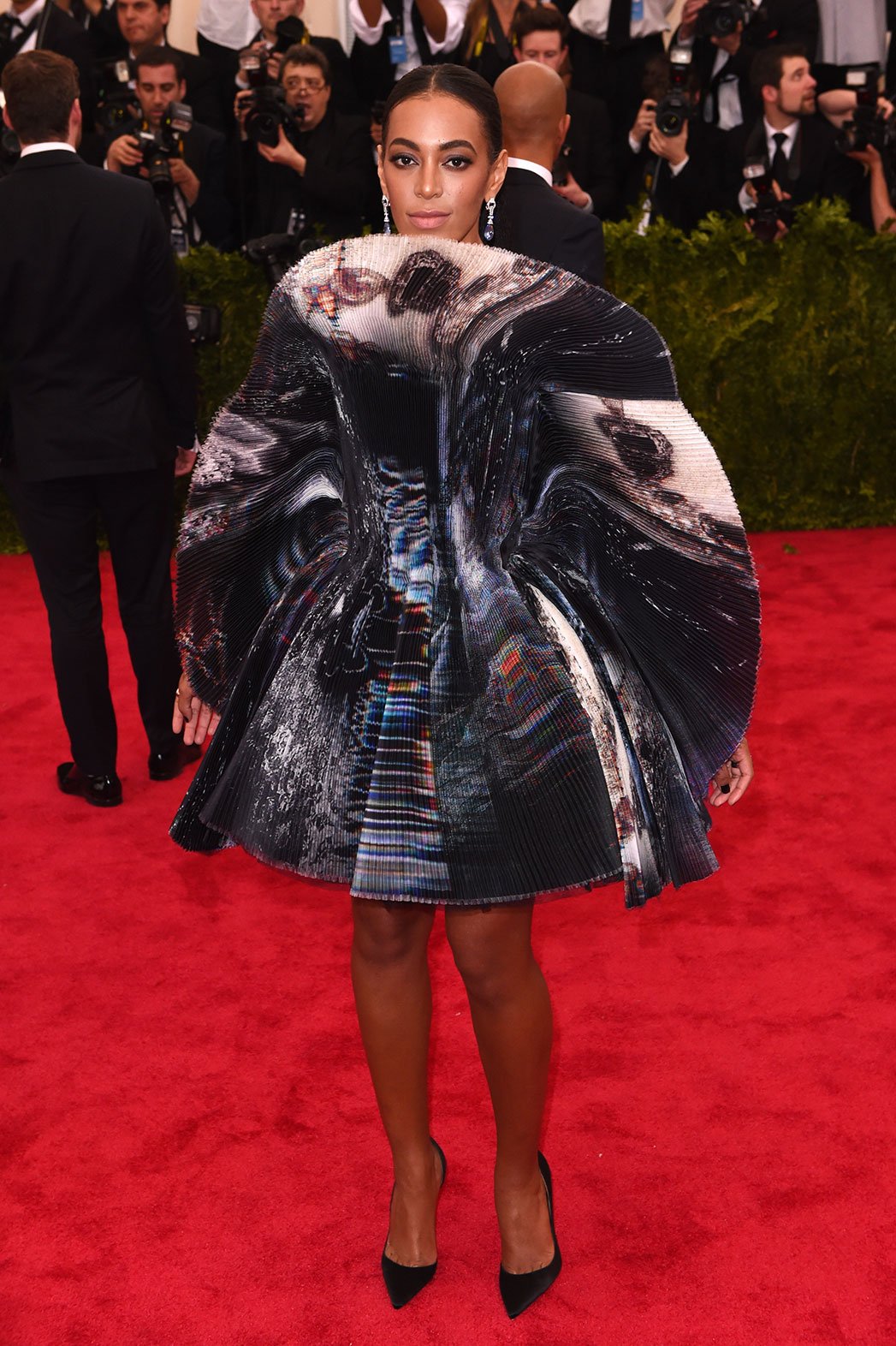 Solange Knowles in an abstract printed scultural dress by Giles at the 2015 Met Gala. 01.