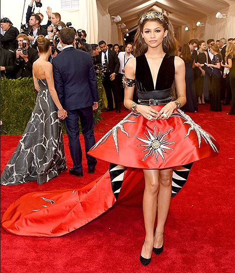 Zendaya Coleman in a deep-v structural mini dress by Fausto Puglisi at the 2015 Met Gala. 02.