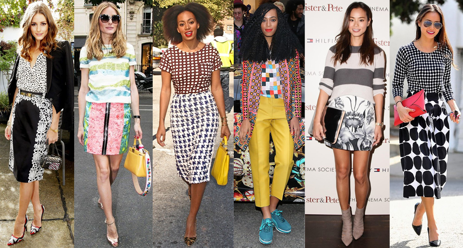 Olivia Palermo, Solange Knowles, & Jamie Chung mixing prints.
