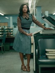 For the playful/Network-inspired photo shoot, Taraji plays with retro menswear pieces, including Michael Kors Collection (shop sweater here), Zara, Chloe, Dolce & Gabbana, Miu Miu, Louis Vuitton, Prada, Fendi (shop suit here), Bottega Veneta, Pomellato (shop bracelet here), Hermes, Tibi (shop boots here), Missoni, Rochas, Valentino (shop shoes here), & more!