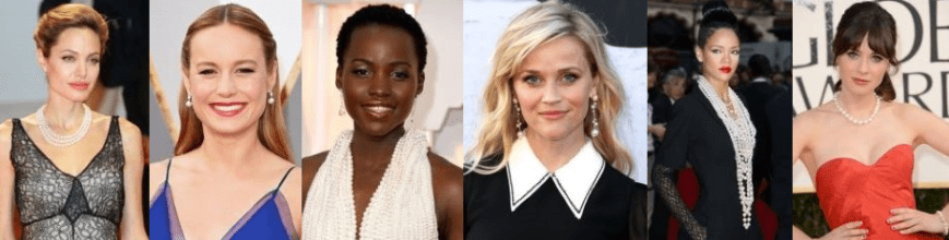 Sometimes when I can’t make up my mind of how I want to style my outfit in terms of jewelry, pearls are an easy go-to for instantly adding some much-needed glam & sophistication to an otherwise casual look. The holidays are the perfect time of year to consider pearls, & not just for jewelry must-haves.Take inspiration from the stylish likes of Angelina Jolie, Brie Larson, Lupita Nyong’o, Reese Witherspoon, Rihanna, & Zooey Deschanel, all donning pearls in earring, bracelet, or necklace form.