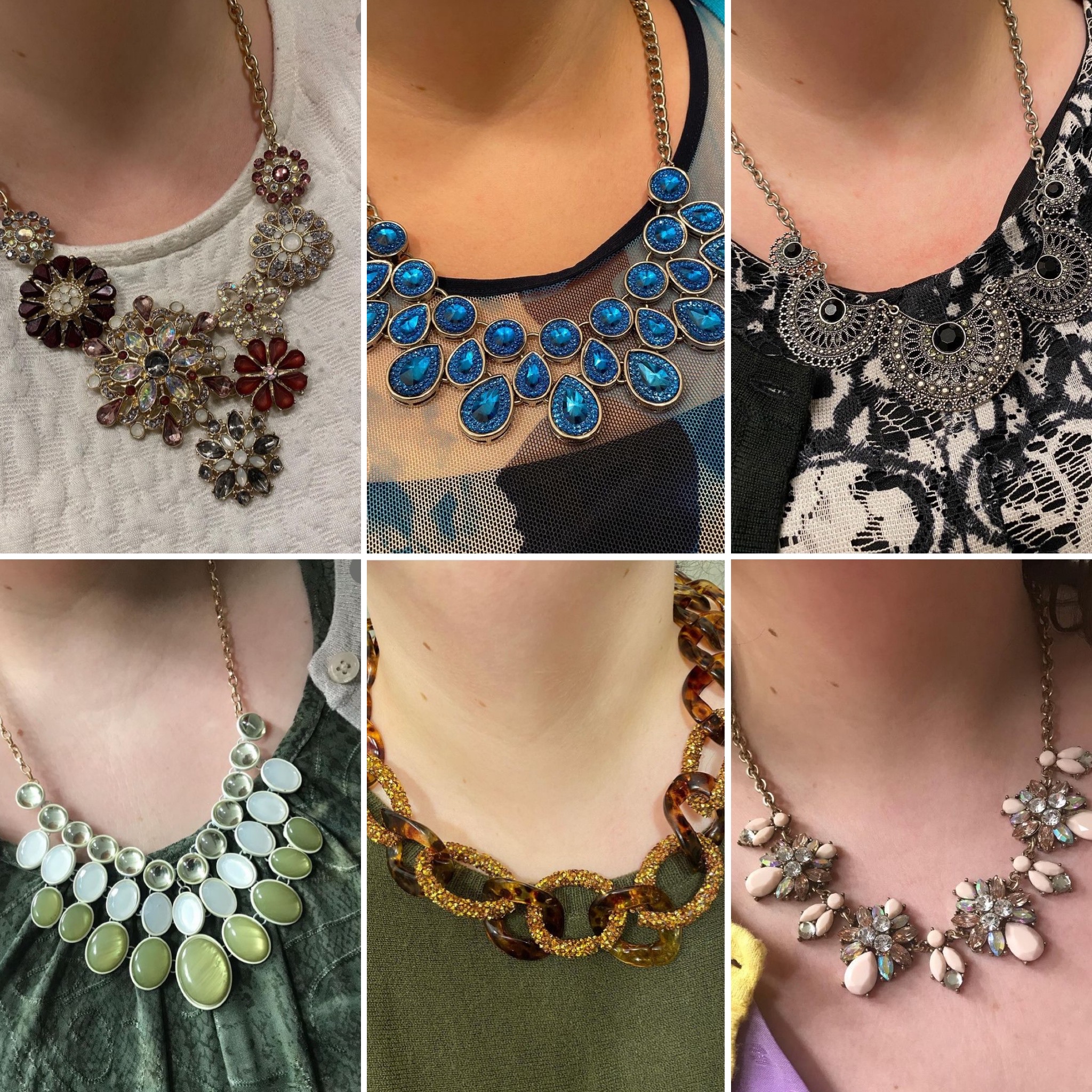 When it comes to accessorizing, I believe in balance. Very rarely would I pair a chunky necklace with over-the-top earrings because I wouldn’t want my special pieces to distract or appear too heavy. With the start of the new school year, though, I’ve been finding every opportunity I can to wear my favorite & most stylish statement necklaces, especially since they went unworn for so long while I worked from home for 15 months & being boxed up for 2 years. Here are just some of the old favorites that have recently emerged into rotation, as seen on Style Darling Daily’s Instagram: