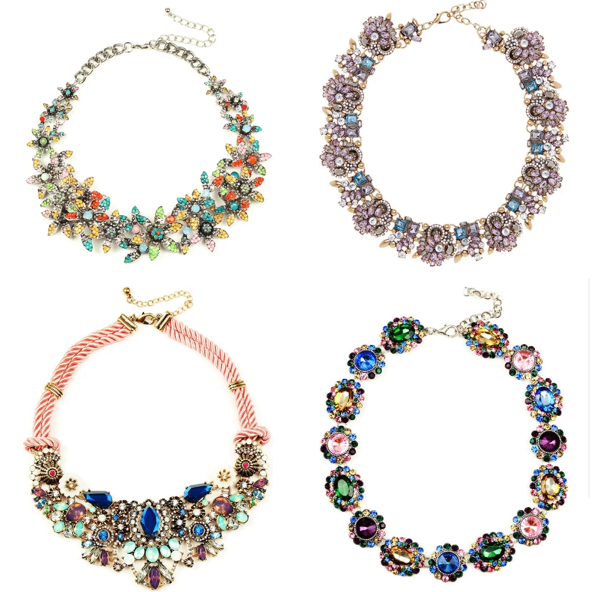 SHOP: Eye Candy Los Angeles June pavé crystal flower statement necklace (on sale: $41.97), purple ivy necklace (on sale: $32.97), Juline multi color crystal collar necklace (on sale: $34.97), & color collar necklace (on sale: $32.97) @Nordstrom Rack.
