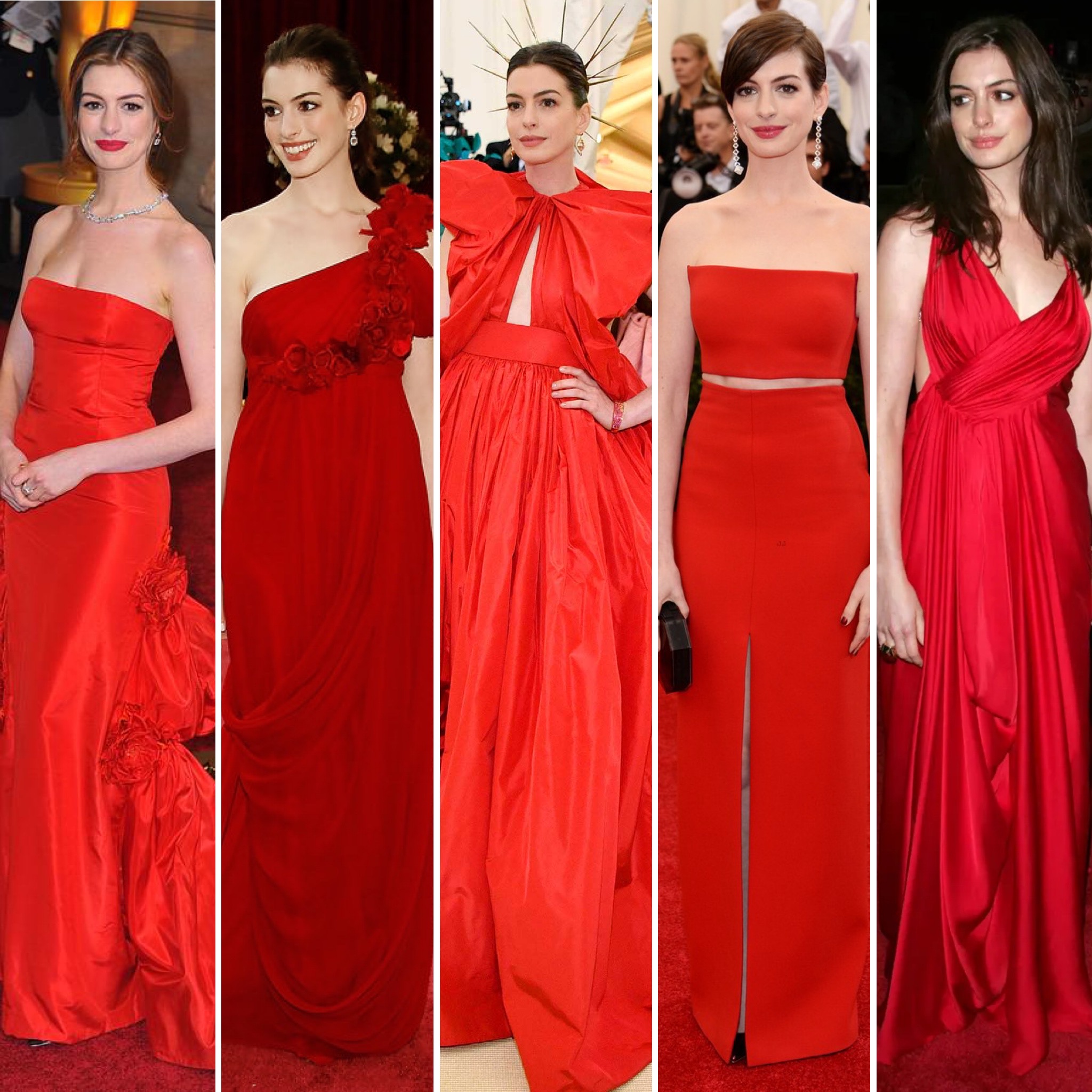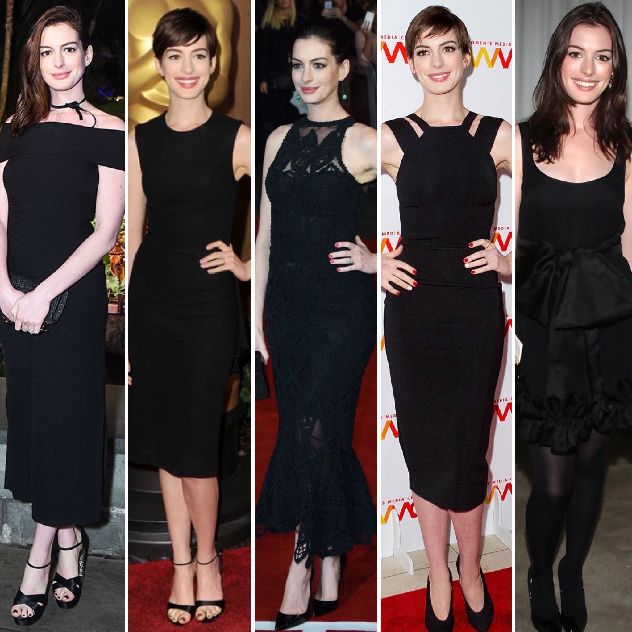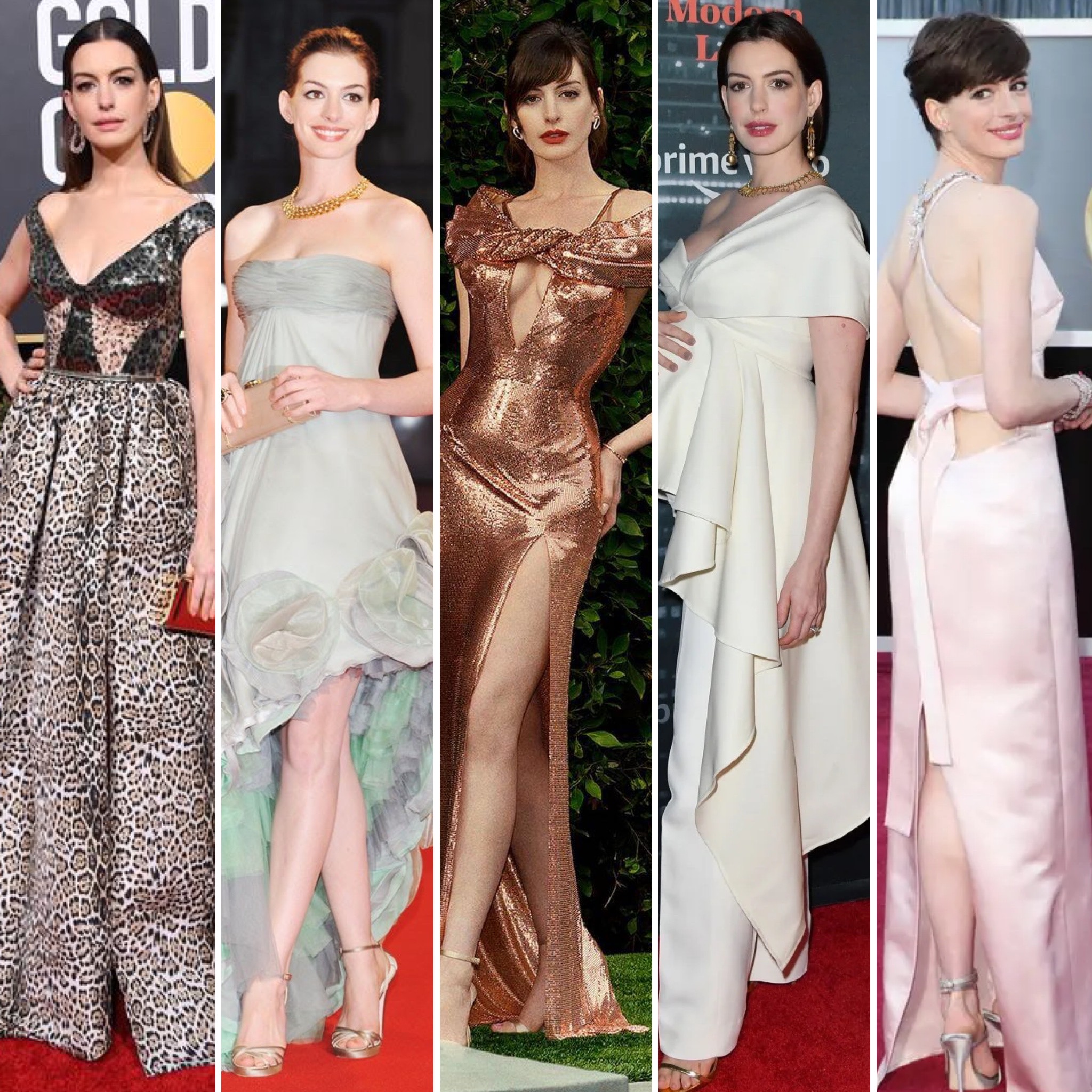 Academy Award-winning actress Anne Hathaway’s steady career & evolving style just keeps getting better. Now, at 40, the star proves that risk-taking fashion & bold statement pieces accessorize confidence. Not only does The Devil Wears Prada breakout sparkle on the big screen & red carpet, but she’s always glamorous, glittering, sleek, & modern for various press events, engaging talk show appearances, & in her street style too. The mother of two embodies a graceful combination of current & classic, playing with shapes, textures, & cut-outs with her ever-changing hairstyles!