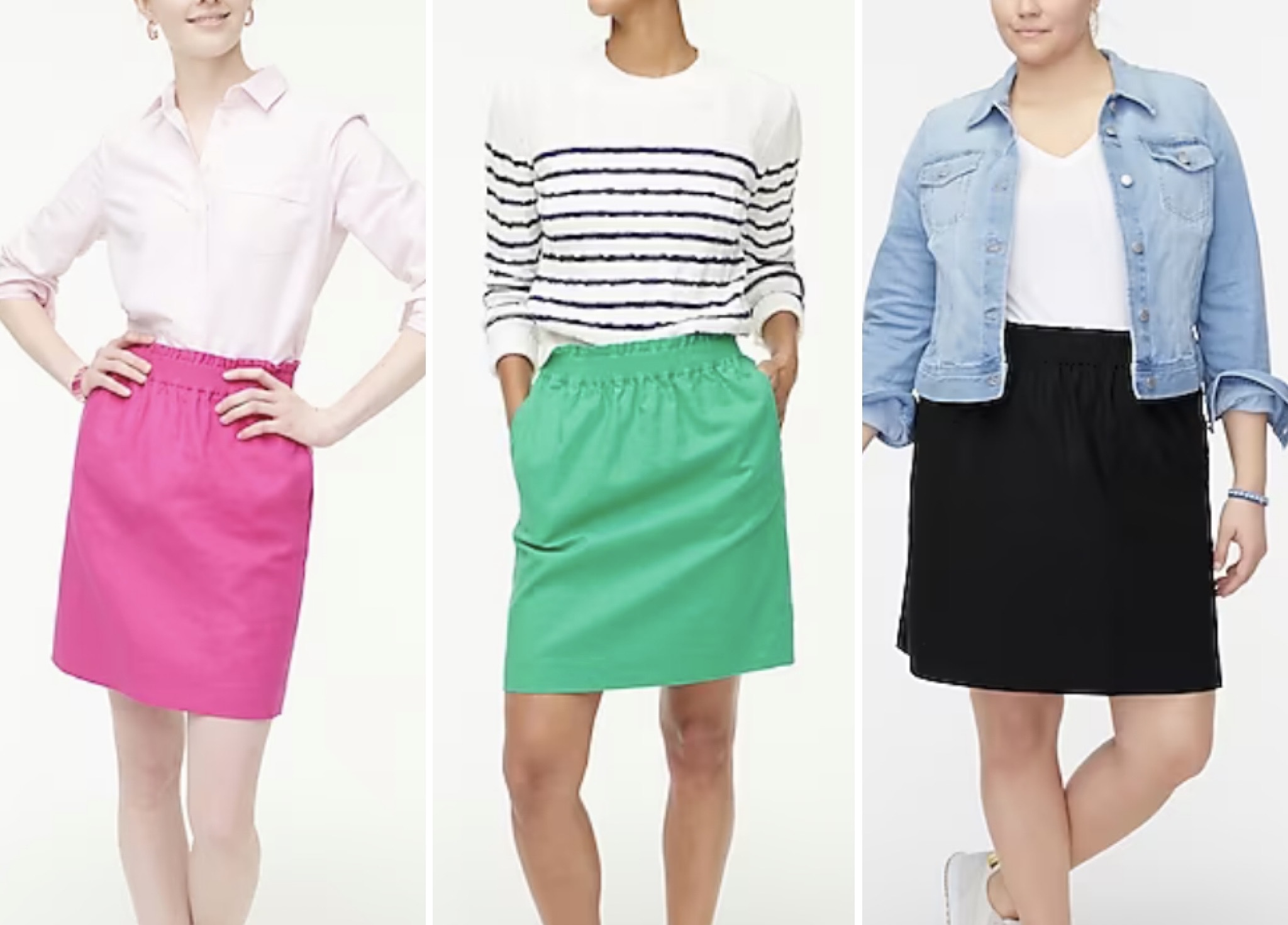 SHOP: linen-cotton city skirt in radiant fuchsia, modern clover, & black @J. Crew Factory (on sale: $34.50, available in sizes 00-20).