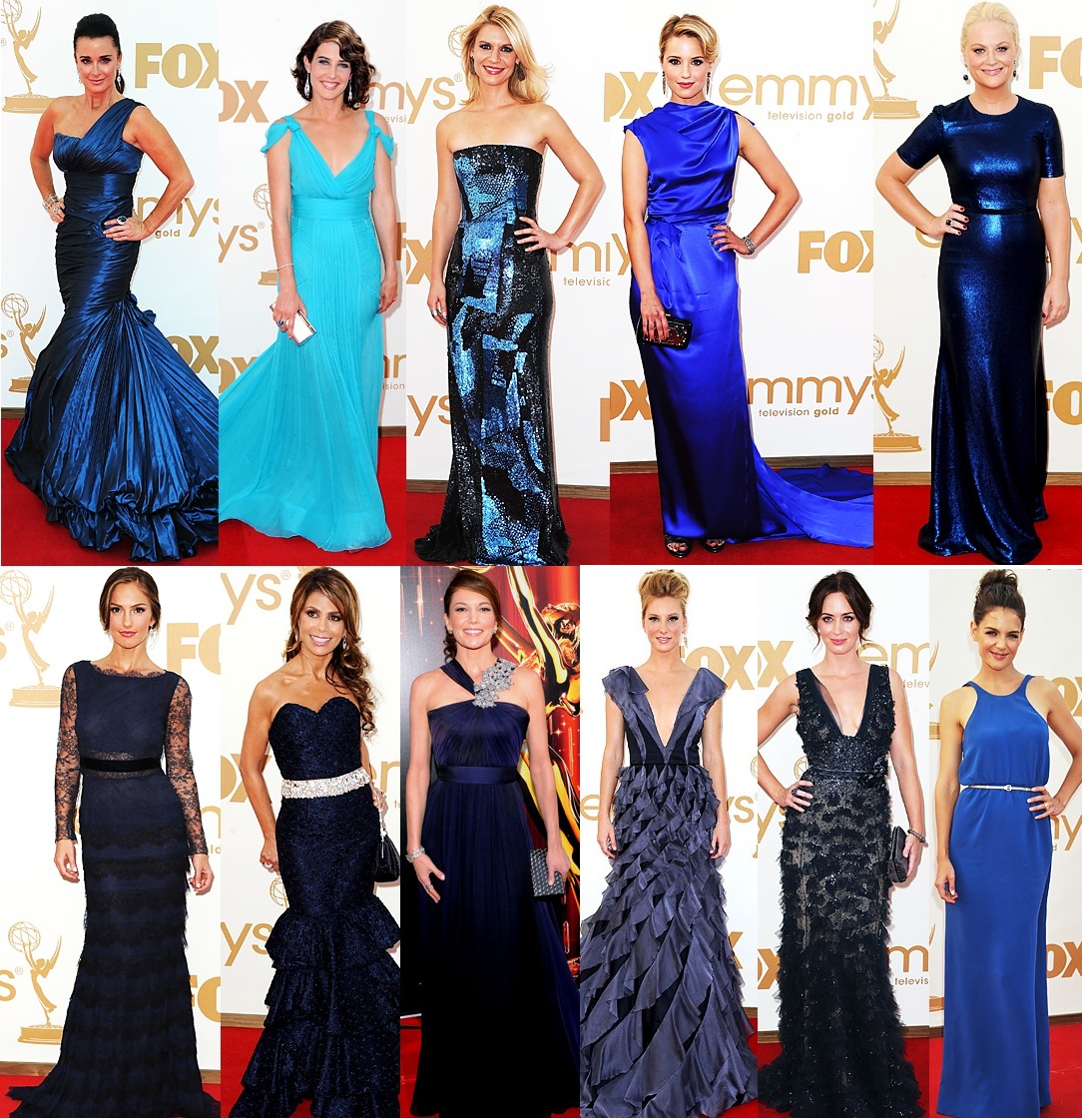 I previously stated that red was the color of the night for the 2011 Emmy Awards, but red was given some serious competition with the ladies wearing different shades of blue & varying styles of exquisite black gowns!  There’s just so much to talk about with these looks, proving that even the most classic or daring silhouettes can rival on the red carpet!