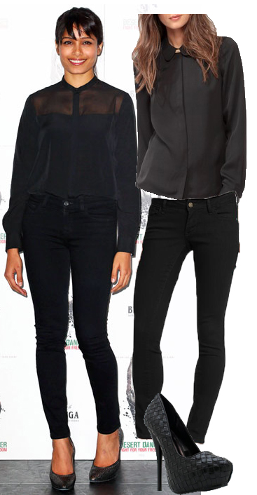 Fashion icon Gwen Stefani hit the street in a white sheer top with black zippered skinny jeans, an oversize shopper, & mesh open-toe booties in L.A. Singer Solange Knowles took a risk in a white caped Balmain top (here) & belted wide-leg pants with a wooden clutch & black sandals at the Balmain Fall Winter 2015 show at Paris Fashion Week. Oscar-nominee Reese Witherspoon spent the day shopping in a white blouse with a floral flounced Dolce & Gabbana skirt, Tabitha Simmons basket weave wedges (shop here), & white leather bag from The Row. Author of The Divergent Series, Veronica Roth, wowed in an Ann Demeulemeester white blazer with a camisole, striped Michael Lo Sordo asymmetric skirt, Salvatore Ferragamo clutch, Tory Burch sandals, & Le Vian jewels.