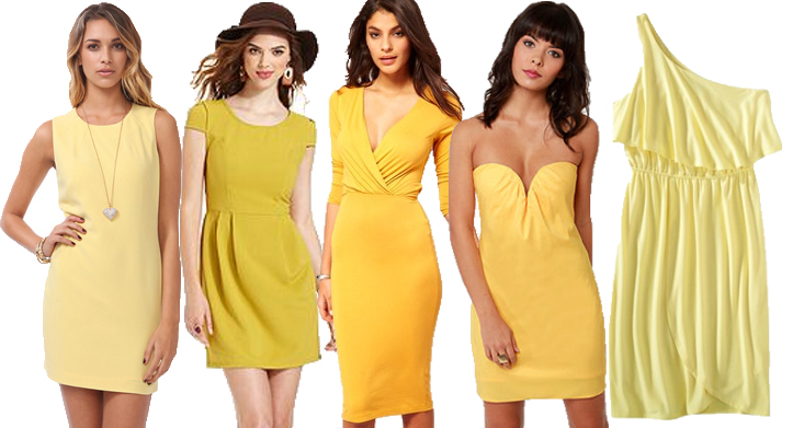 It wasn’t heard to search the web for some cute & affordable yellow dresses to wear with your favorite evening shoes, collar necklaces, stacked bangles, or statement rings. Yellow dresses are also popular in pastels like the cutout ribbon back dress ($27.80) from Forever 21, which is described as “citron.” @Macy’s, the Bar III cap-sleeve seamed scoop neck dress ($29.99) is marked down from its original $69.00 price tag.  For a figure-flattering, sexy dress, the ASOS wrap front pencil dress ($56.29) is the perfection attention-grabbing option, especially is paired with strappy sandals, or belted & worn under a boyfriend blazer.