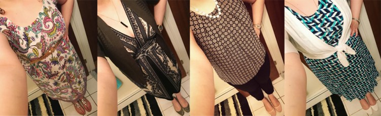 Post-baby, I could still wear the same dresses I had previously, although my collection of tights was no longer viable because they were all too small for me. My maternity leave occurred in the transition from summer to fall and I had a whole closet flip to conduct before returning to work. Also, the pants I’d searched high and low for (pants were always the enemy—I’m a dress girl) were too snug around my healing middle. I was uncomfortable wearing anything tight to put pressure on my C-section incision. Lastly, time to get ready in the morning is even less available, so I have to plan a week’s worth of work outfits in a hurried and harried 20-minute span the weekend before, if I can.