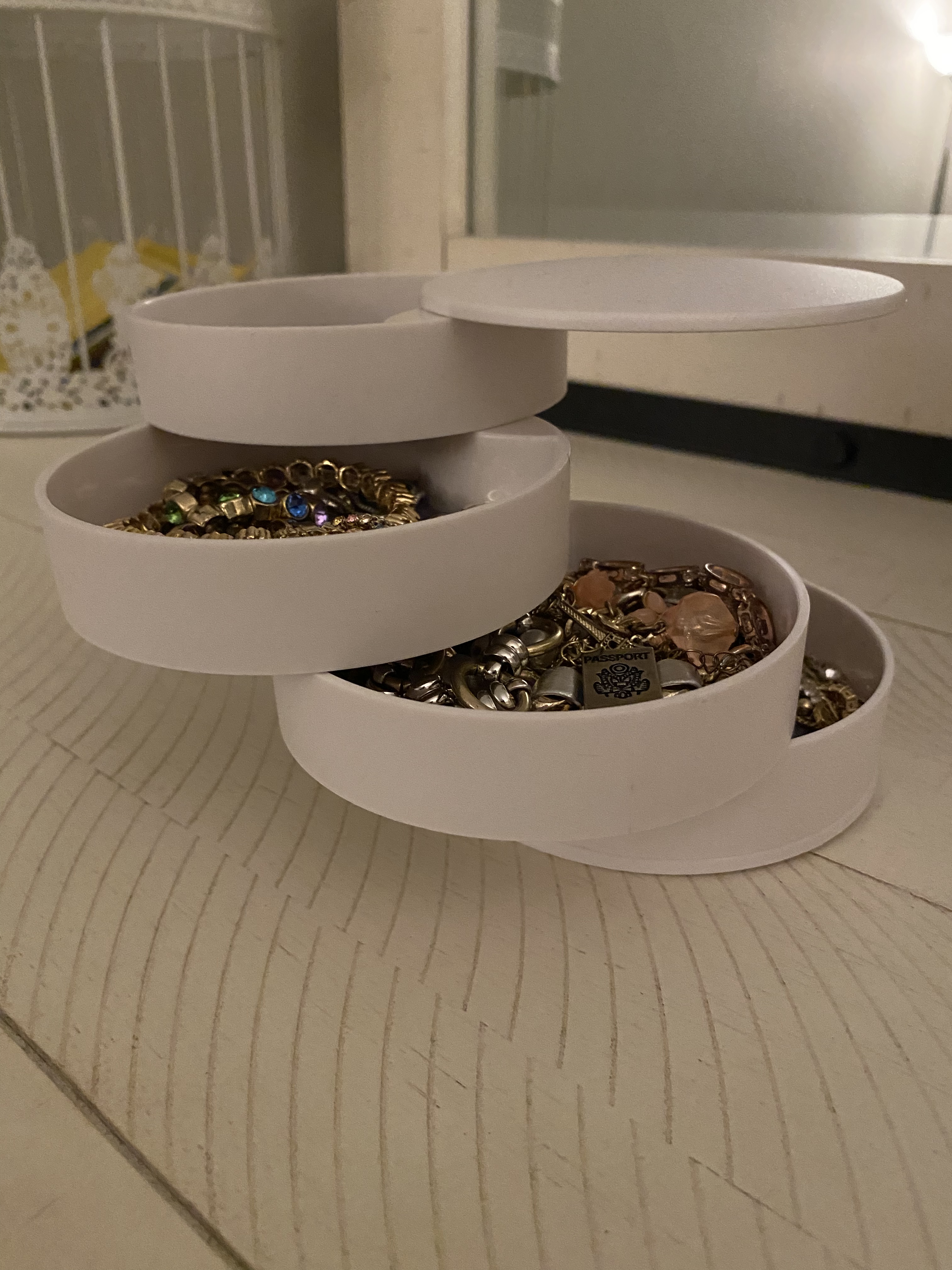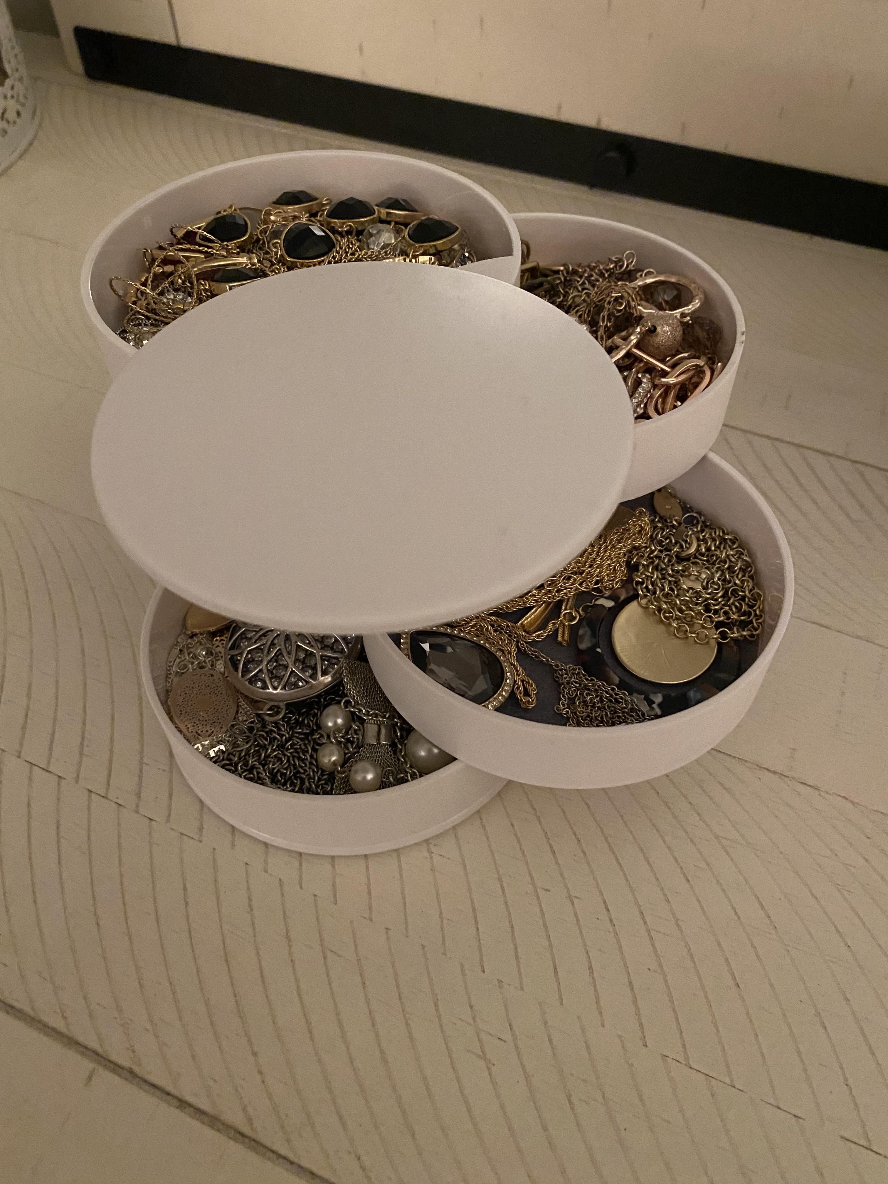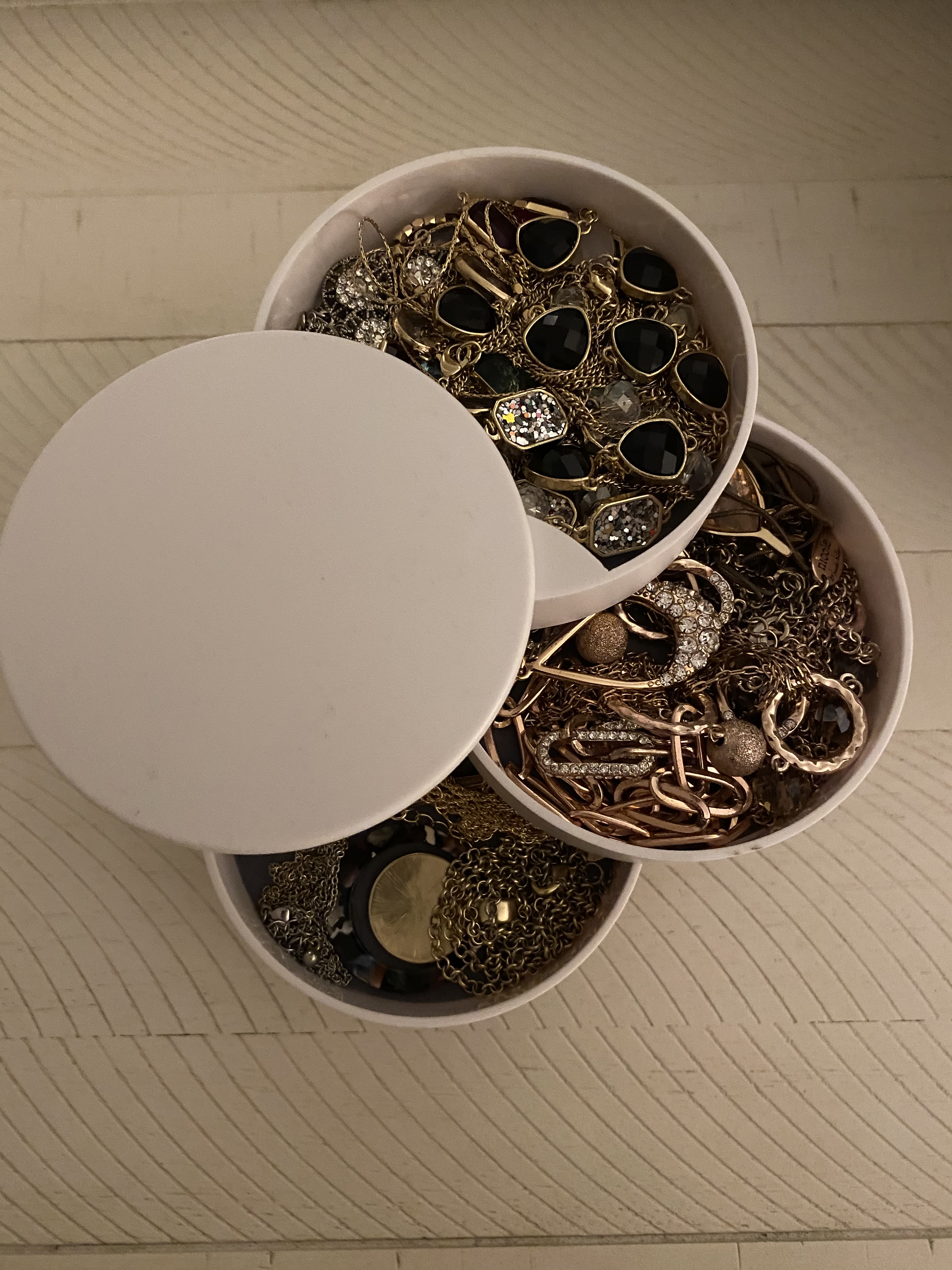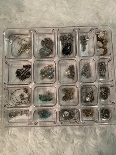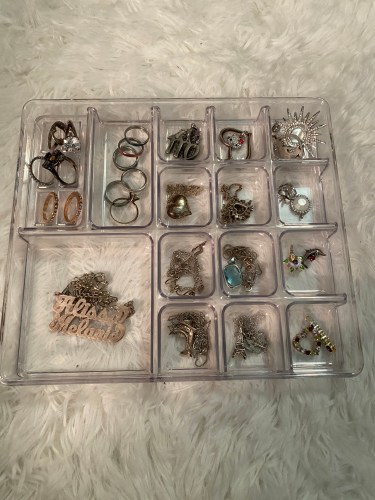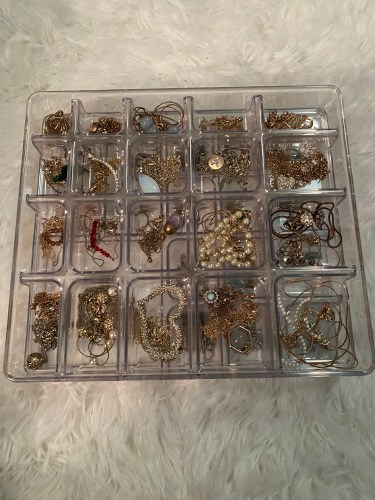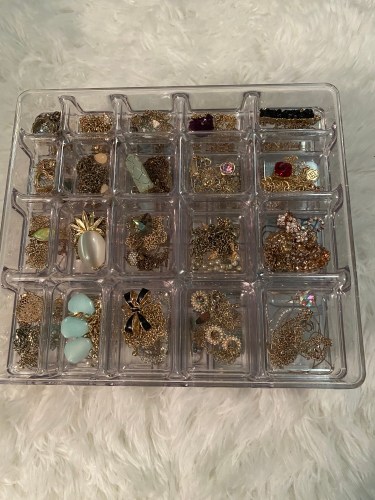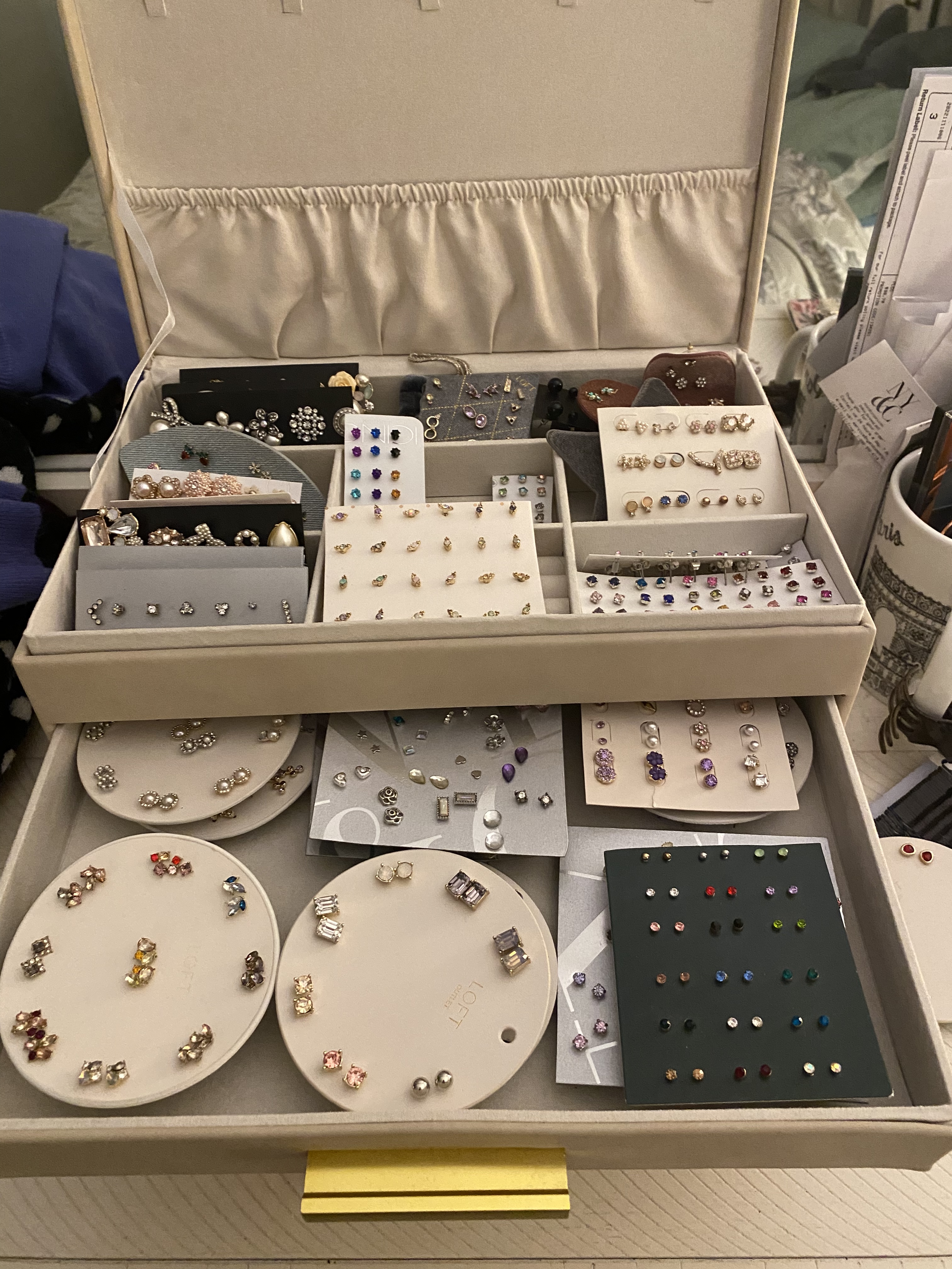 I appreciate how everything can be seen in each layer & once I can see all of my jewelry, I’ll create a better system in storing by metal (gold tone, silver tone, or rose tone) or bead color, along with type of earring (chandelier, beaded, dangle, threaders, etc.) or if a pair has multiples in different colors, which will be helpful when I know I want a certain type of earring or necklace in a specific metal.