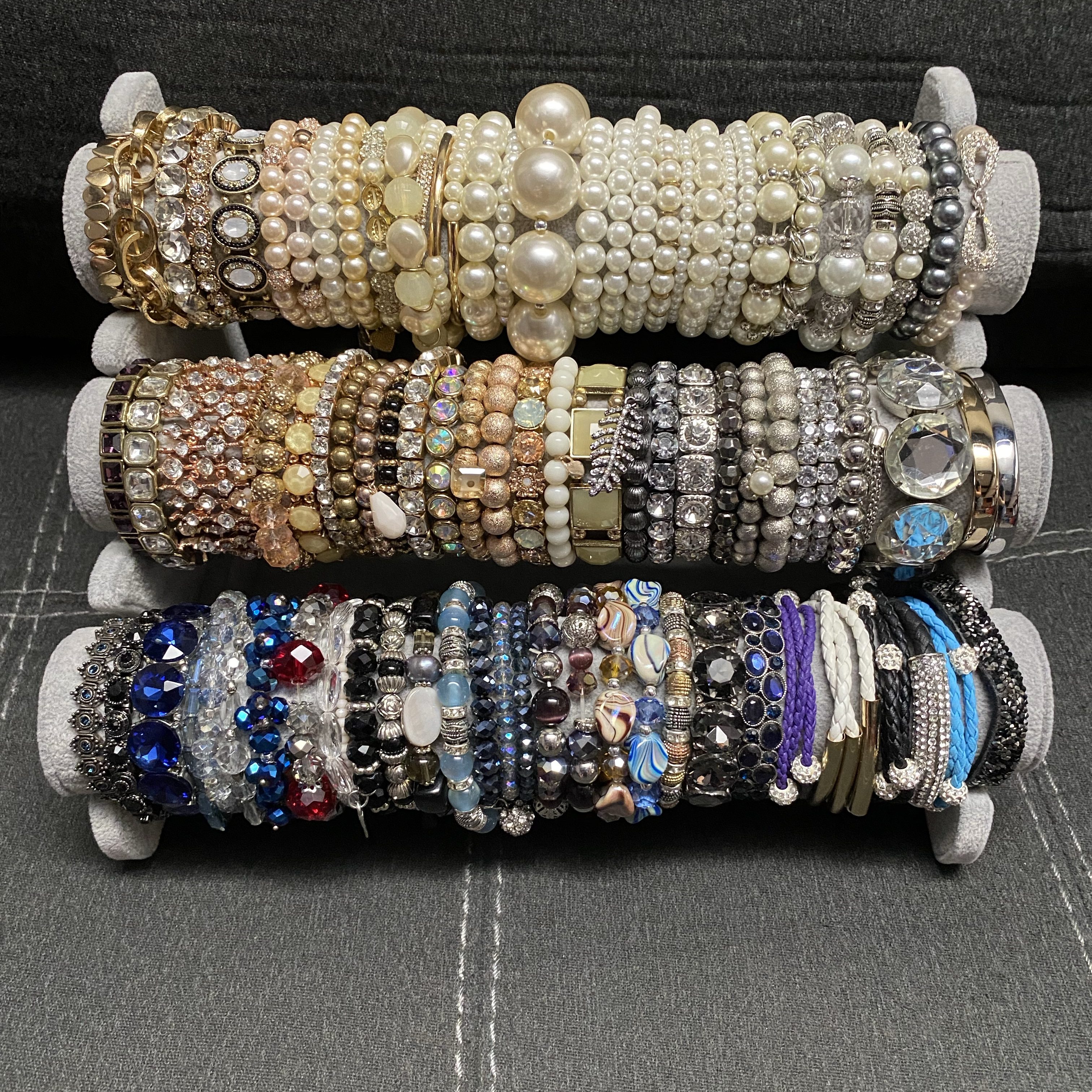 For the $32.99 price, I was pleased that there were 2 stands, so that I could devote another one entirely to my stretch bracelets as well. This makes my styling time much more efficient & I am reminded of what I have on a regular basis so as not to buy repeats, no matter the deal or how pretty they may be!