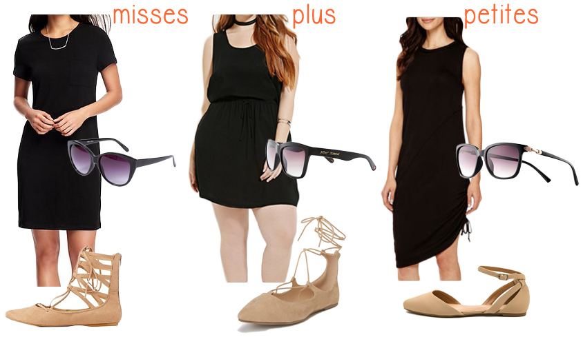 SHOP: Misses tee dress @Old Navy (available in sizes XS – XXL), black sunglasses @Icing, lace-up pointed flats @Charlotte Russe, Plus dress @Forever 21, Betsey Johnson sunglasses @Nordstrom Rack, Wild Diva ankle strap flats @Aeropostale (also available in black), Petites Worthington dress @JCPenney, ELLE sunglasses @Kohl’s, & ankle strap d’orsay flats @GOjane.
