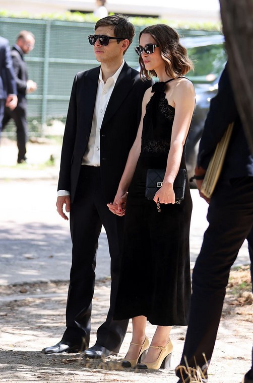 Her return to spotlight is long overdue & demonstrates her consistent triumphant style, grace, & polish as she turned heads in an unlikely summer combination of velvet & Mary Jane heels (shop similar here). However, Keira nails the look, especially with bumper sunglasses (shop similar here), a quilted clutch (shop similar here), & elegant rings (shop here & here). See the photos below of Keira’s exquisite style, alongside her husband, James Righton, to inspire your next summer LBD outing.