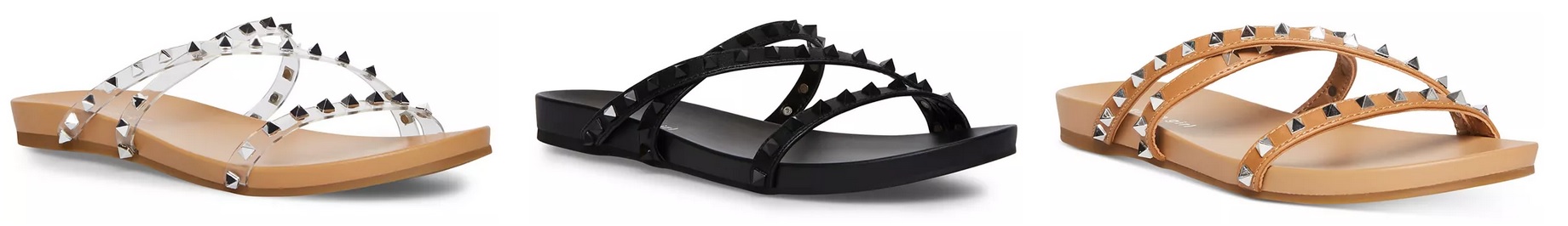 SHOP: Madden Girl Candy Studded Strappy Footbed Sandals in clear, black, or light tan (available in sizes 5.5-8.5, on sale: $22.95 with coupon: JULY) @Macy’s.