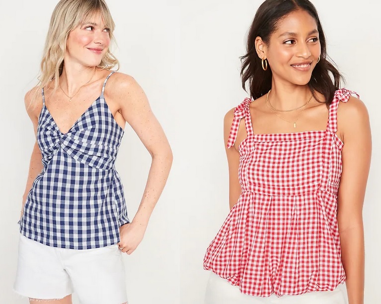 One of the most classic & stylish staple summer patterns is gingham, offering a cool, breezy cotton piece for any seasonal look, especially in red, black, white, or blue. Old Navy is on top of the summer gingham trend with a variety of pieces at prices you can’t miss out on, especially in sizes XS-3XL!