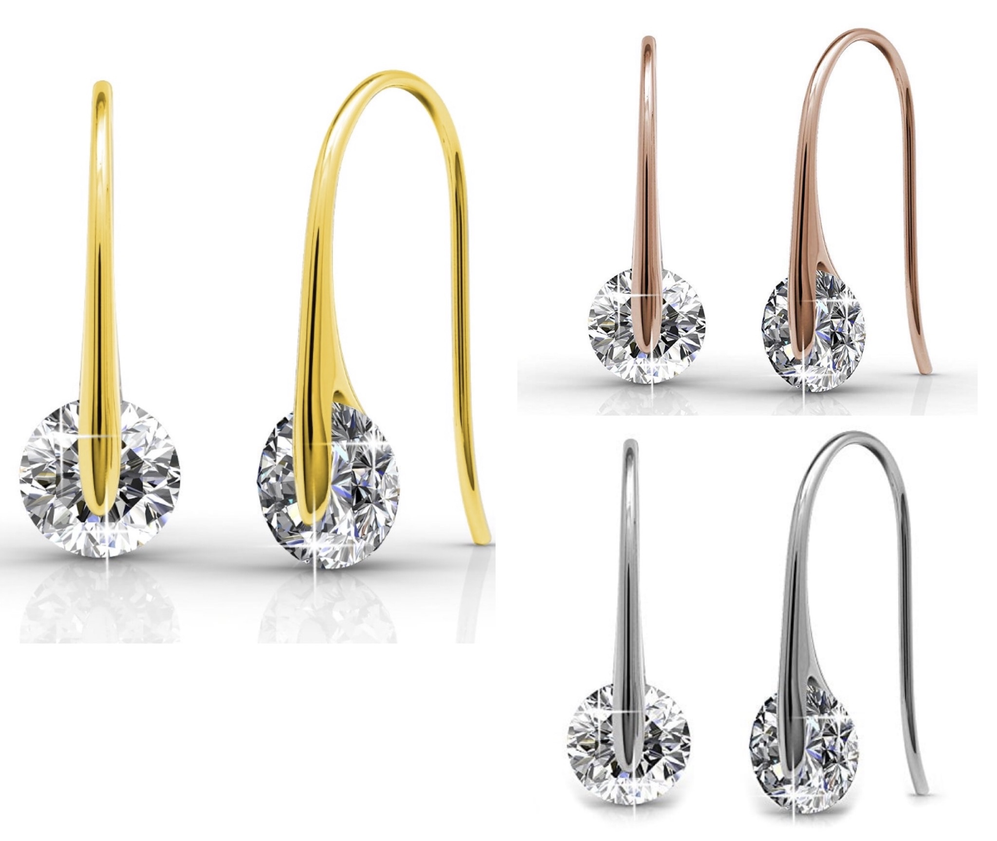 SHOP: Cate & Chloe Isabel 18-karat teardrop earrings with crystals in rose gold, white gold, & yellow gold @Walmart (on sale: $17.99-$19.99, originally $150.00).