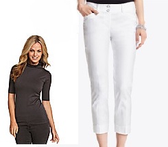 This look can be enhanced if accessories are your thing by adding an animal print belt, strappy sandals, layers of beads, or a blinged out watch.  The pieces can be separated for some everyday looks like the top with a pencil skirt & cut-out shooties.  The bottoms are perfect for the spring & summer with a floral peasant top & espadrilles.