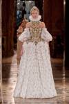 Clearly, no detail was overlooked & while these pieces aren’t necessarily street-ready or red carpet-friendly for the average movie premiere, the collection honors the brand’s legacy with ornate beading & studding, lush lace-over-lace, exaggerated peplums, jeweled masks, metallic crown-inspired corsets, & a no-sparkle-left-behind philosophy. In Style spoke with the label which shared that the “hyperworked embellishment” details take a cue “from communion gowns to cardinals’ robes, the high church, nuns, popes, angels.” What better timing than now for such an homage when the Christian community is buzzing about who will be the next pope!