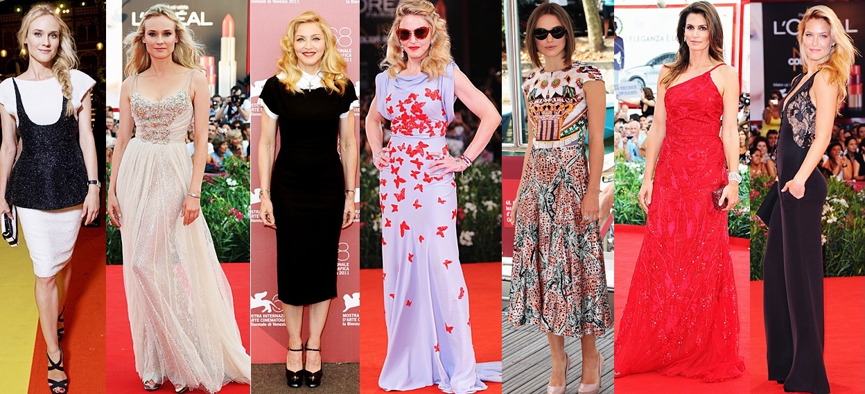 Although I didn’t mention this in my intro, I’d like to point out the risk-takers, in my opinion, who both rocked their looks & maybe didn’t succeed as they’d hoped, but still, they deserve some praise. I’m not saying that I don’t like these looks, but for me, they qualify as risk-takers. Whether they were experimenting with lace, beads, prints, shape, or hemline, they stole the attention on the red carpet for just a little bit longer than the rest. Check out Diana Agron in Carolina Herrera, Tina Fey in Oscar de la Renta, Jane Krakowski in Escada, January Jones in Atelier Versace, Rutina Wesley, Sofia Vergara in Carolina Herrera, Jewel in Zuhair Murad, Kristen Wiig, & Maria Menounos in Ralph & Russo: