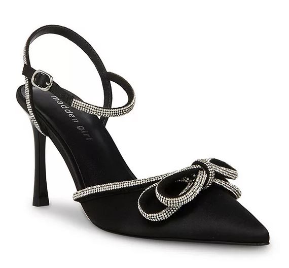 SHOP: rhinestone bow sculptural heeled slingback pumps in black @SHEIN ($29.00, available in sizes 5.5-8.5).
