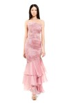 I love the feminine softness from the short-sleeved Collette Dinnigan gown from the Resort 2013 Collection. The coral / fuchsia hue is perfect for an ingénue like the ever-changing Dakota Fanning or the retro Krysten Ritter. Roberto Cavalli‘s black sequined & lace overlay corset-structured gown is a stunning choice for a more dramatic look on the red carpet & it’s from the Pre-Fall 2013 Collection.