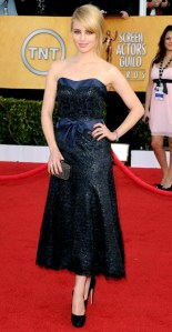 I just can’t explain how much I truly loved Dianna Agron‘s gorgeous navy Chanel tea-length dress.  She’s the one to watch, of all the Gleek red carpet darlings.