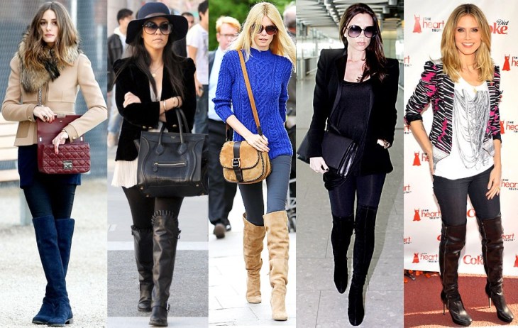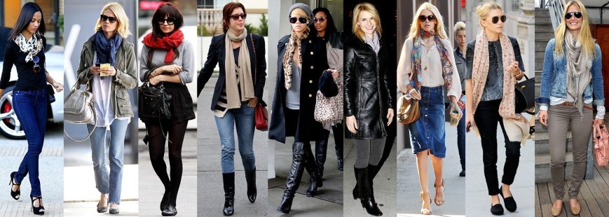 Celebrities are even breaking out their best in outerwear, including Kate Middleton in a belted Reiss Angel coat with suede knee boots. Supermodel Claudia Schiffer looks cozy in a retro 70s-inspired poncho-style coat with a middle part & suede-accented bag. Katie Holmes arrives for her appearance on Broadway in a knee-length coat, eggplant Dolce & Gabbana bag, & suede Rag & Bone booties. Socialite & reality star Olivia Palermo hits the streets of Brooklyn in her fur-trimmed coat over leather leggings & knee boots. Gwen Stefani always stands out, especially in her printed plaid coat with matching red lips & white-rimmed shades for a day out in London.