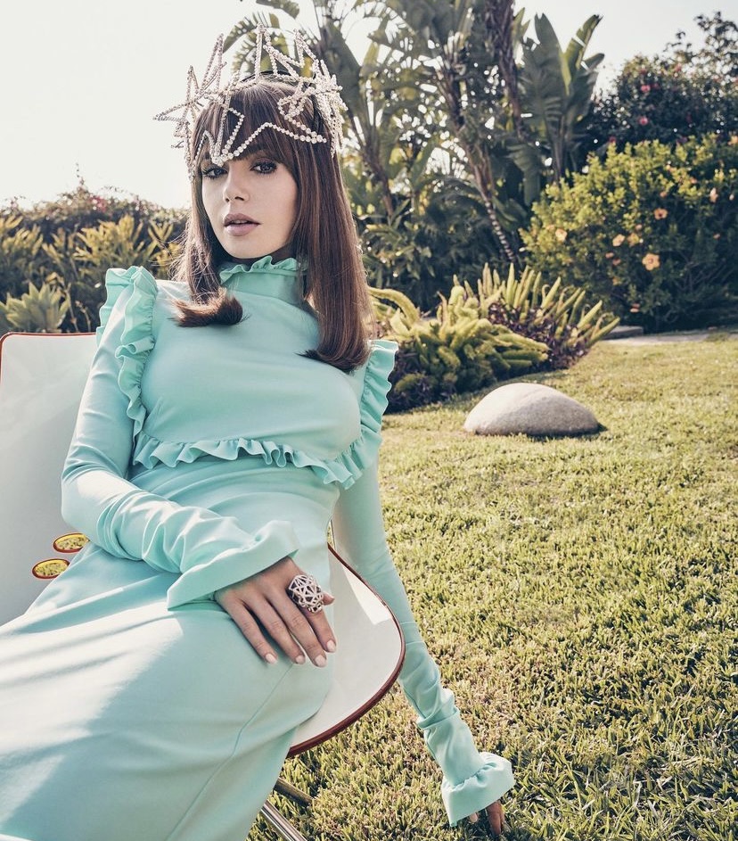 For the feature article’s photo shoot, styled by Karen Clarkson & photographed by Royal Gilbert, the Fear Street star’s feminine side sparkles with lots of pink, lace, regal jewels, & pointy toe pumps, which are a departure from her personal off-screen style that includes baggy jeans, a tee, & a blazer. However, the looks for the shoot derive from designers, such as Miu Miu, Versace, GCDS, Bulgari, Moschino, Gucci, Alaia, & Prada.