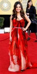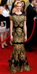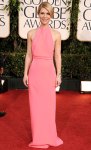 Designs by Alexandre Vauthier made a style statement at the Golden Globes since both supermodel Heidi Klum & Downton Abbey actress Michelle Dockery both donned looks, but I picked this leg-baring halter gown from the Spring 2013 Haute Couture Collection. J. Mendel‘s Pre-Fall 2013 Collection was a dreamy mixture of texture, detail, flowy fabrics, & strong silhouettes, including this lace-accented spaghetti strap gown with off-the-shoulder tiers. Also, Giambattista Valli‘s white & gold ball gown took my breath away from its Spring 2013 Haute Couture Collection & would certainly wow fashion critics if worn on Isla Fisher, Julianne Hough, or Kerry Washington.