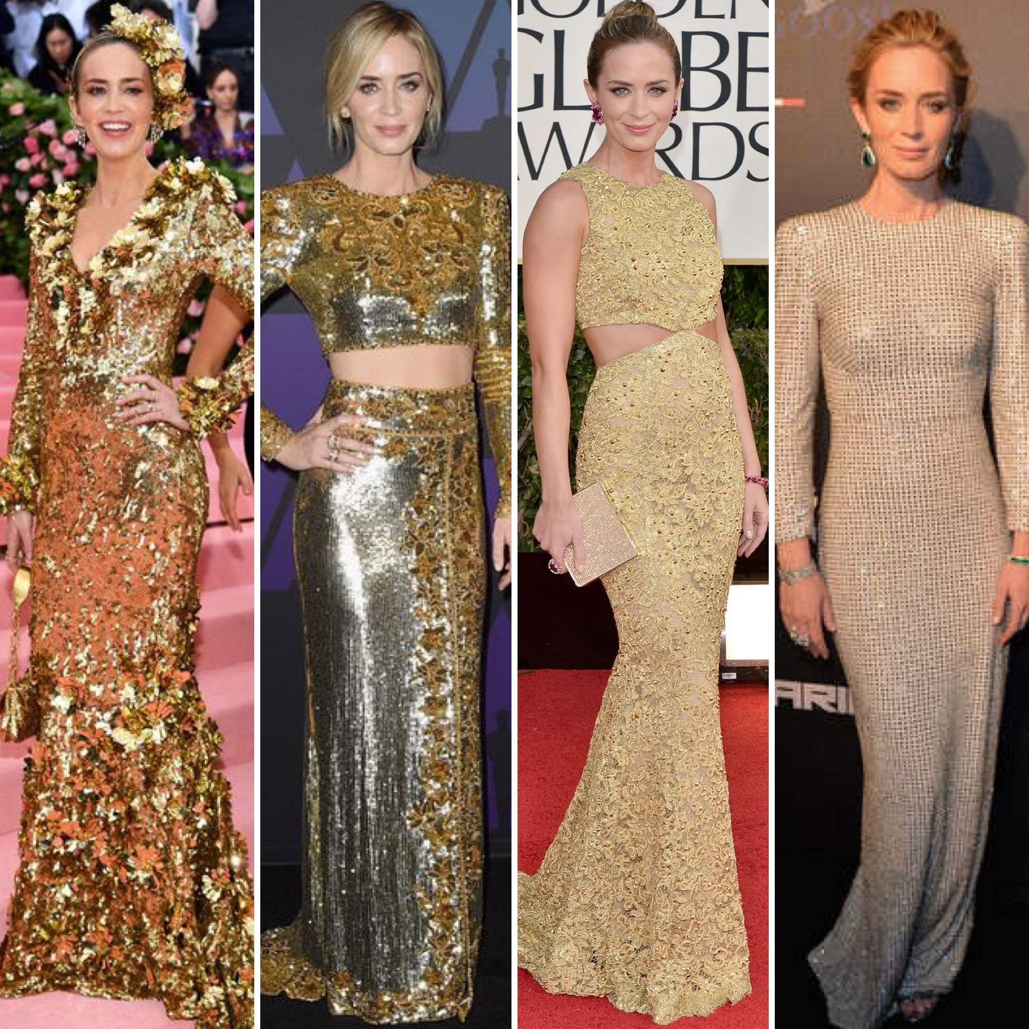 Next, we have a floral-embroidered belted gown by Temperley London, which was featured in the Pre-Fall 2013 Collection. This has a very classic, Zooey Deschanel look to it, which is why I loved including it! Badgley Mischka is a name synonymous with red carpets & perhaps we’ll see this all-over embellished metallic gown from their Pre-Fall 2013 Collection on one of the front-running Oscar nominees. One of my favorite designers forever & always is Marchesa & I wasn’t surprised to see so many red carpet candidates in their Spring 2013 Ready-To-Wear Collection, including this sari-inspired sheer-overlay blue & gold confection.