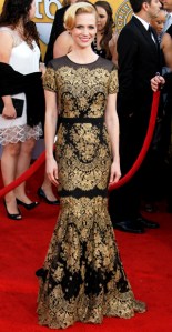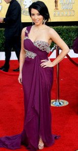 Although they say that black doesn’t photograph well… These Style Darlings prove otherwise! First, Michelle Forbes, star of The Killing definitely killed in a black Romona Keveza strapless gown with a fitted bodice. Winner Julie Bowen took a plunge in a black metallic sequin-embellished column dress by Oscar de la Renta. She’s never looked better, especially with those stunning Neil Lane earrings! Kaley Cuoco’s retro polka Romona Keveza dress was by far my favorite black dress, especially with the polka dot netting & red satin peep toes & Judith Leiber clutch. Fringe star Anna Torv went for a classic old Hollywood look in a black Vera Wang gown with Lorraine Schwartz earrings & navy Roger Vivier shoes. Boardwalk Empire star Gretchen Mol kept its simple & elegant in a sweetheart L’Wren Scott silk gown with emerald Fred Leighton jewelry. Glee bad girl, Naya Rivera showed off her figure in a sculpted black dress with corset bodice.