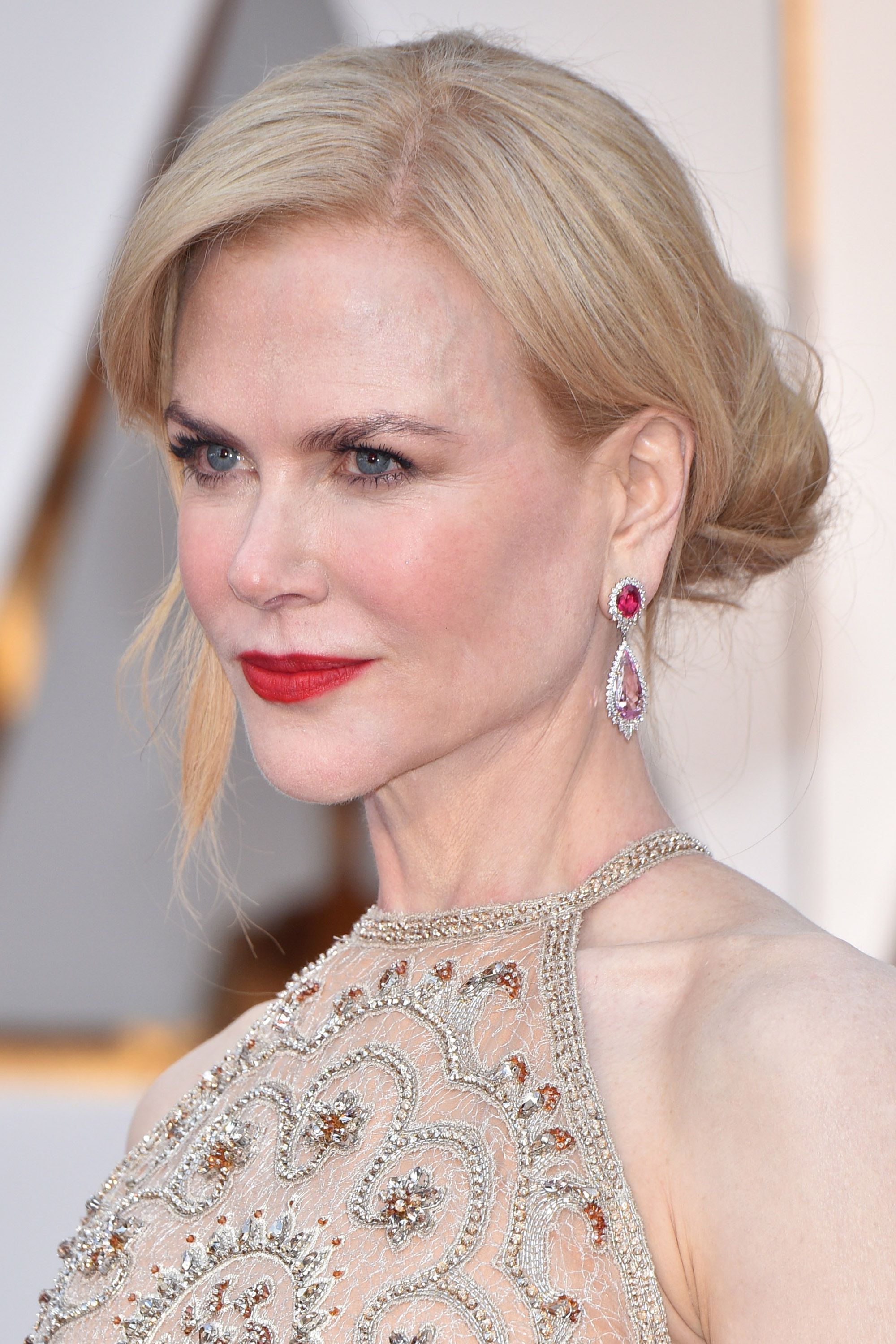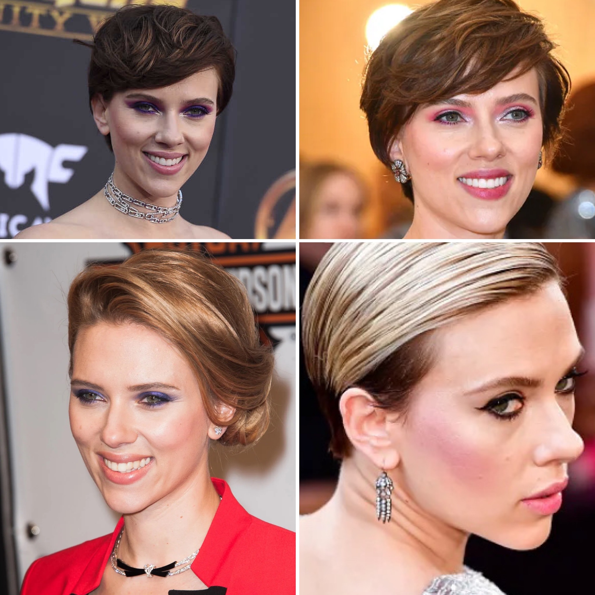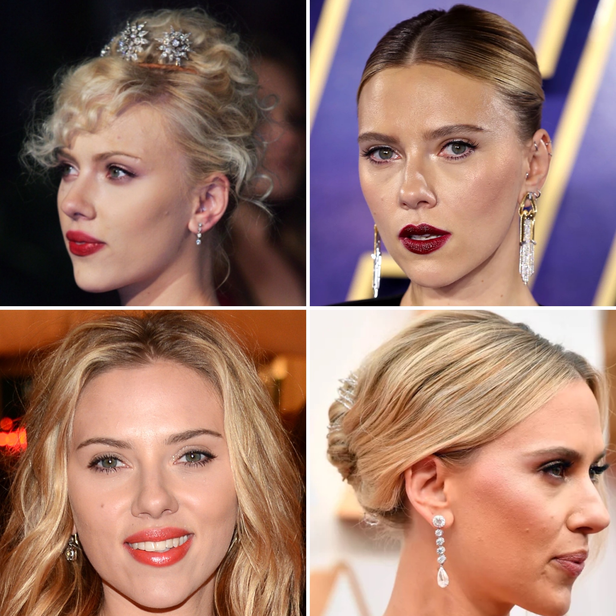 Two-time Academy Award nominee Scarlett Johansson has been dazzling on the red carpet for over two decades now, alternating between retro Old Hollywood to empowering menswear to Grecian goddess glam. In fact, Scarlett is a beauty chameleon too, donning long golden locks, sandy blonde bobs, & platinum tresses, as well as styles in red & brunette. No matter the outfit or hairstyle, the Black Widow star accessorizes with bold statement earrings or necklaces, framing her face & topping off her ensemble with polish & edge. She loves to don a long dangling earring, vintage bauble, stacked hoops, & classic studs as her beauty look changes.