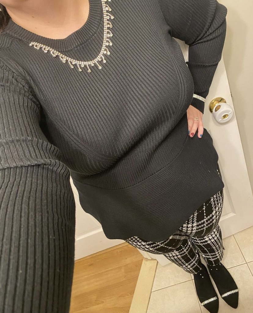 Usually, I love to add my own sparkly statement necklace to a sweater, playing up all the styling possibilities each time I wear it; however, when a piece has built-in jewelry, it’s kind of a win too, especially with a flattering peplum silhouette.