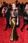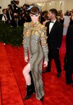 This year’s Met Costume Institute Gala‘s theme was “PUNK: Chaos to Couture,” which means that we expected to see a lot of black, leather, cut-outs, sheer panels, & edge on the red carpet, but I don’t think fashion critics quite expected so much interpretation of the rock & roll vibe. This included some amazing looks worn by a platinum Anne Hathaway (in vintage Valentino), gothic Ashley Greene (in Marchesa), plaid-happy Christina Ricci (in Vivienne Westwood), spiked Miley Cyrus (in Marc Jacobs), a pretty Jennifer Lawrence (in Dior Haute Couture), Kylie Minogue‘s colorblocked look (in Moschino), as well as headlining statements of style from a silver-haired Nicole Richie (in Topshop), an under-stated Nicki Minaj (in Tommy Hilfiger), Beyoncé‘s show-stopping ensemble (in Givenchy by Riccardo Tisci), Sarah Jessica Parker‘s powerhouse pieces (by Giles & Philip Treacy), & Nina Dobrev‘s brave one-piece (in Monique Lhuillier).