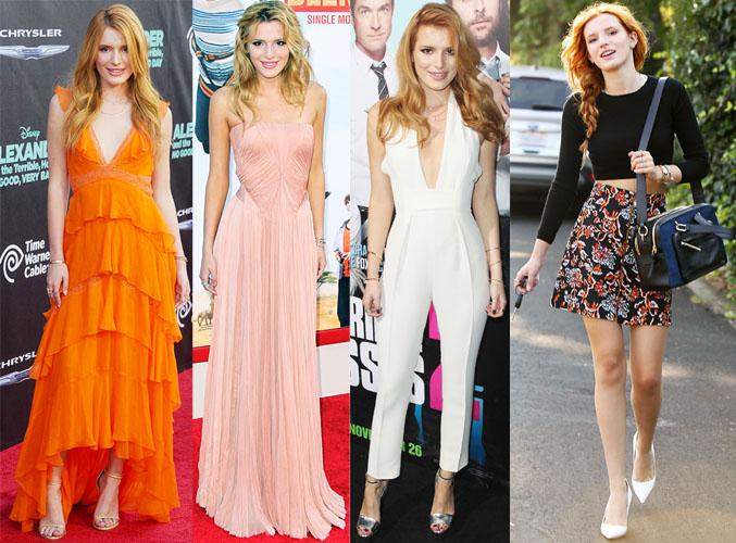 Bella Thorne in Alberta Ferretti, Zac Posen, Gucci, & Zara.Disney star Bella Thorne has emerged as a teen-to-watch & young-woman-on-the-verge when it comes to style. The former Shake It Up! actress experiments with feminine gowns, layers of chiffon, as well as chic jumpsuits & mini skirts galore! Her big screen résumé includes the Drew Barrymore-Adam Sandler family comedy Blended & Alexander and the Terrible, Horrible, No Good, Very Bad Day with Steve Carrell & Jennifer Garner. Bella is true to her name, gorgeous in anything she wears, including top designers & brands like Alberta Ferretti, Zac Posen, Gucci, & separates from Zara.