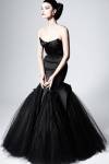 I love the feminine softness from the short-sleeved Collette Dinnigan gown from the Resort 2013 Collection. The coral / fuchsia hue is perfect for an ingénue like the ever-changing Dakota Fanning or the retro Krysten Ritter. Roberto Cavalli‘s black sequined & lace overlay corset-structured gown is a stunning choice for a more dramatic look on the red carpet & it’s from the Pre-Fall 2013 Collection.