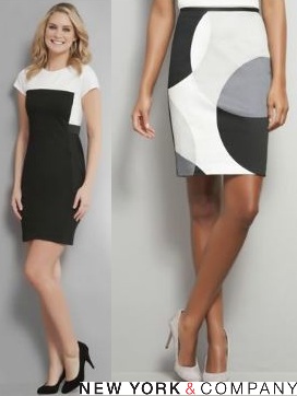 During a recent shopping excursion at the old stomping grounds, New York & Company, I had a coupon in hand & some new spring looks to buy. Of course, I was conscientious of the price tags since I didn’t wanna totally break the bank. However, when I saw the black & white ponte colorblock sheath dress ($59.95) & the black & grey sateen circle pattern skirt ($46.95), my heart skipped a beat & I had to make them mine. Of course, I was the happy recipient of a mega $60 off your $125 purchase coupon, so I was on a mission. Also, most of the current spring merchandise was on sale BOGO 50% off, there were clearance belts for as low as $2.99, & all hosiery was on sale 50% off. The bargains were certainly on my side!