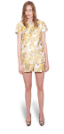 First, for daytime when you’re running some errands or meeting with your girlfriends for a casual luncheon (á la Sex & the City), I recommend playing with the colors in the pants, including the ruched panel cardigan ($9.99) in gold from Dress Barn worn over the lurex lace bra cami ($14.99) in true white from Express. When floral pants such as these are the focal point of your look, you can play with textures to add interest, which is why I’ve selected the Kenneth Cole ‘Slip Me One’ flats ($29.97) in red @Piperlime & the easy metallic combo of Forever 21‘s beaded hoop earrings ($5.80).