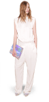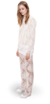 Kristin Cavallari shares her chic maternity style in Joe’s Jeans with a basic black top & blazer to offset the vibrant pattern. 90210 star Shenae Grimes adds some punk flavor to her Alice + Olivia cropped pants with strappy booties & a leather top. Playing with the same idea is Minka Kelly, whose Dolce & Gabbana floral pants are enhanced by suede peep toe pumps & a bright rectangular clutch. Singer Lana Del Rey plays up her demure style in Citizens of Humanity pants under her trench coat with embellished ballet flats. Lastly, Twilight star Kristen Stewart sticks to her favorite designer, Balenciaga, for her micro floral printed pants, paired with a Rebecca Minkoff blazer & a Juicy Couture tank.