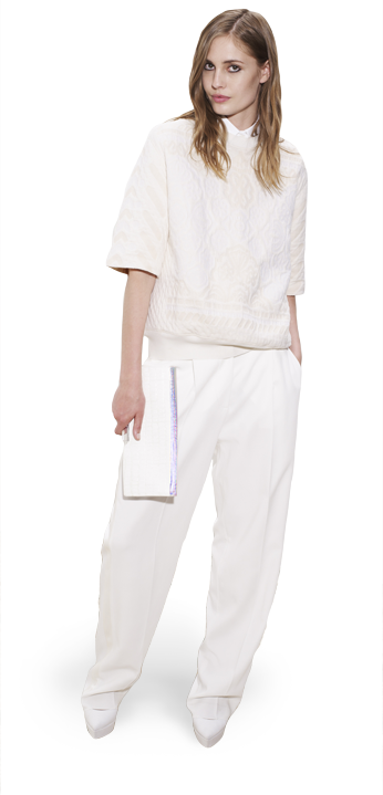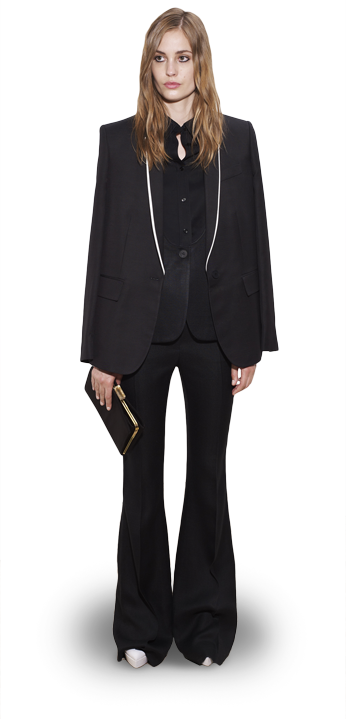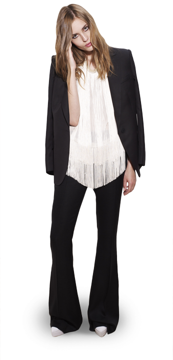 Kristin Cavallari shares her chic maternity style in Joe’s Jeans with a basic black top & blazer to offset the vibrant pattern. 90210 star Shenae Grimes adds some punk flavor to her Alice + Olivia cropped pants with strappy booties & a leather top. Playing with the same idea is Minka Kelly, whose Dolce & Gabbana floral pants are enhanced by suede peep toe pumps & a bright rectangular clutch. Singer Lana Del Rey plays up her demure style in Citizens of Humanity pants under her trench coat with embellished ballet flats. Lastly, Twilight star Kristen Stewart sticks to her favorite designer, Balenciaga, for her micro floral printed pants, paired with a Rebecca Minkoff blazer & a Juicy Couture tank.
